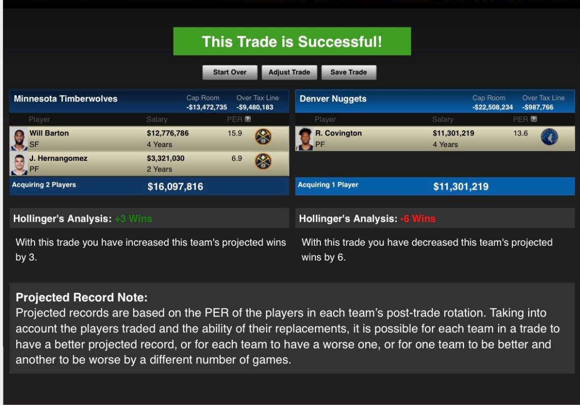 Covington has also turned himself into a reliable 3-point shooter, shooting 36% for his career. Covington’s value would especially be huge in the playoffs for Denver with the amount of elite level wing-scorers in the western conference. Covington would be brought in to guard guys like LeBron James, Kawhi Leonard and Paul George. Covington wouldn’t completely shut those players down, but he is a big body that can help slow them down.
